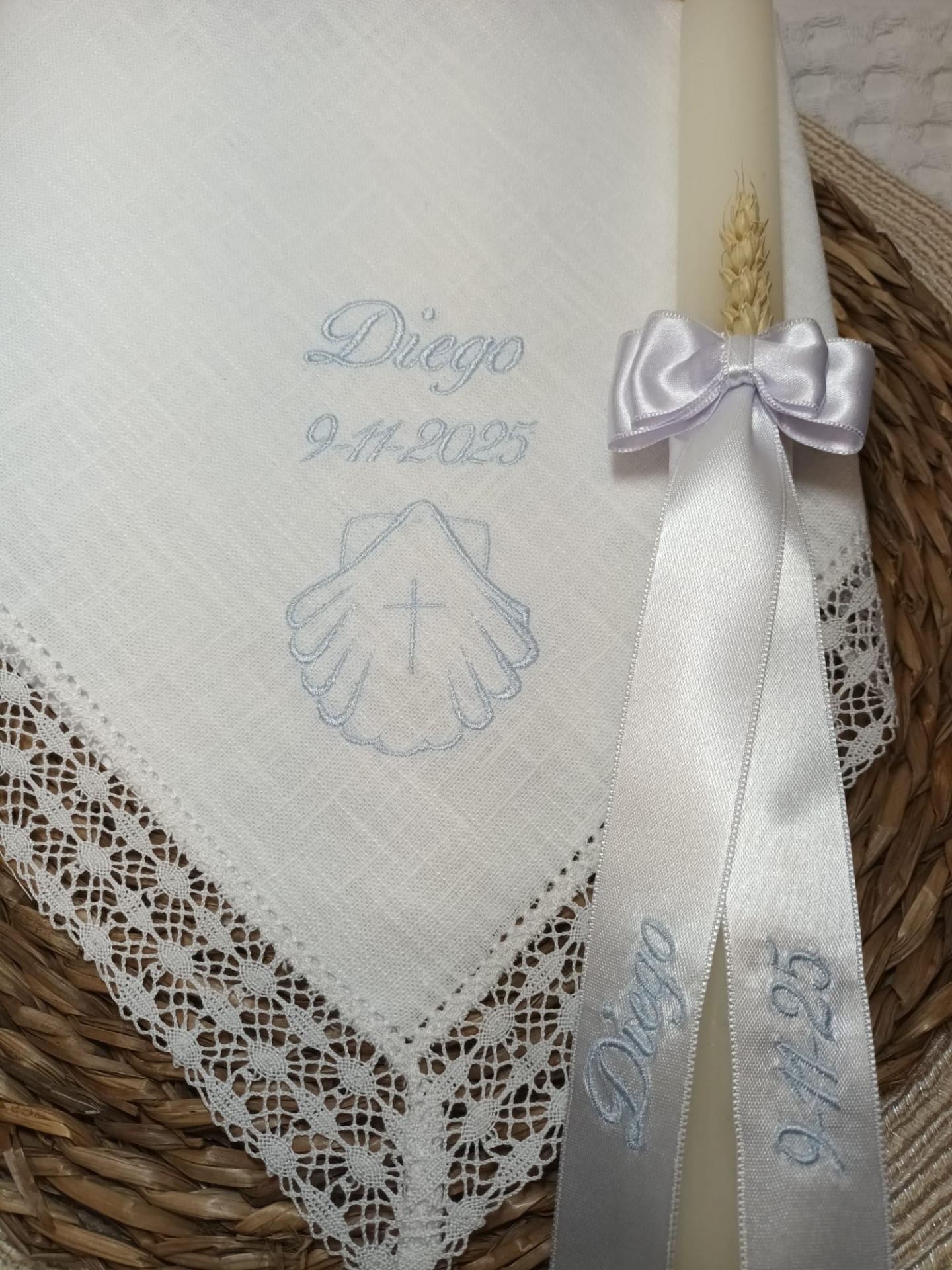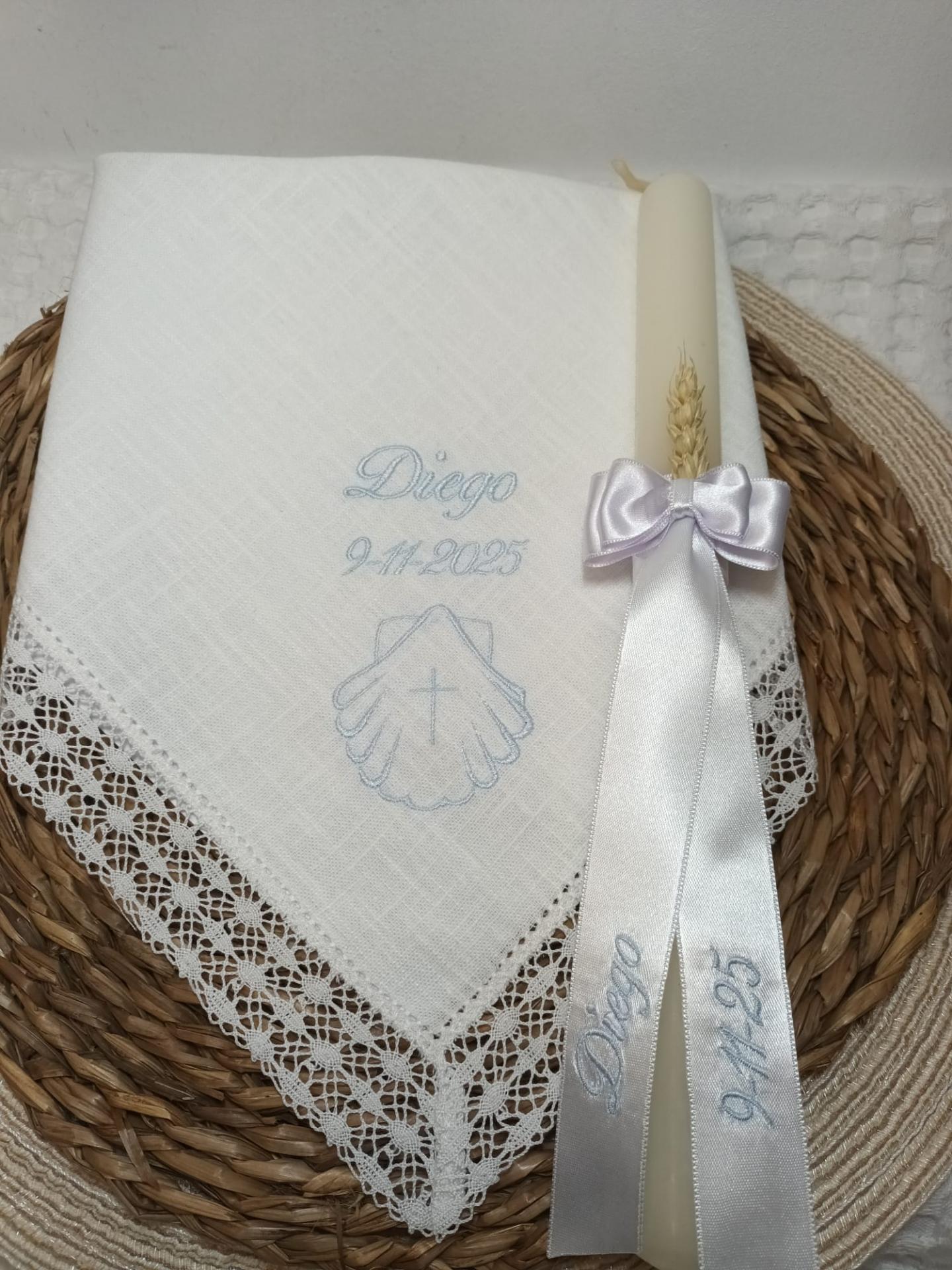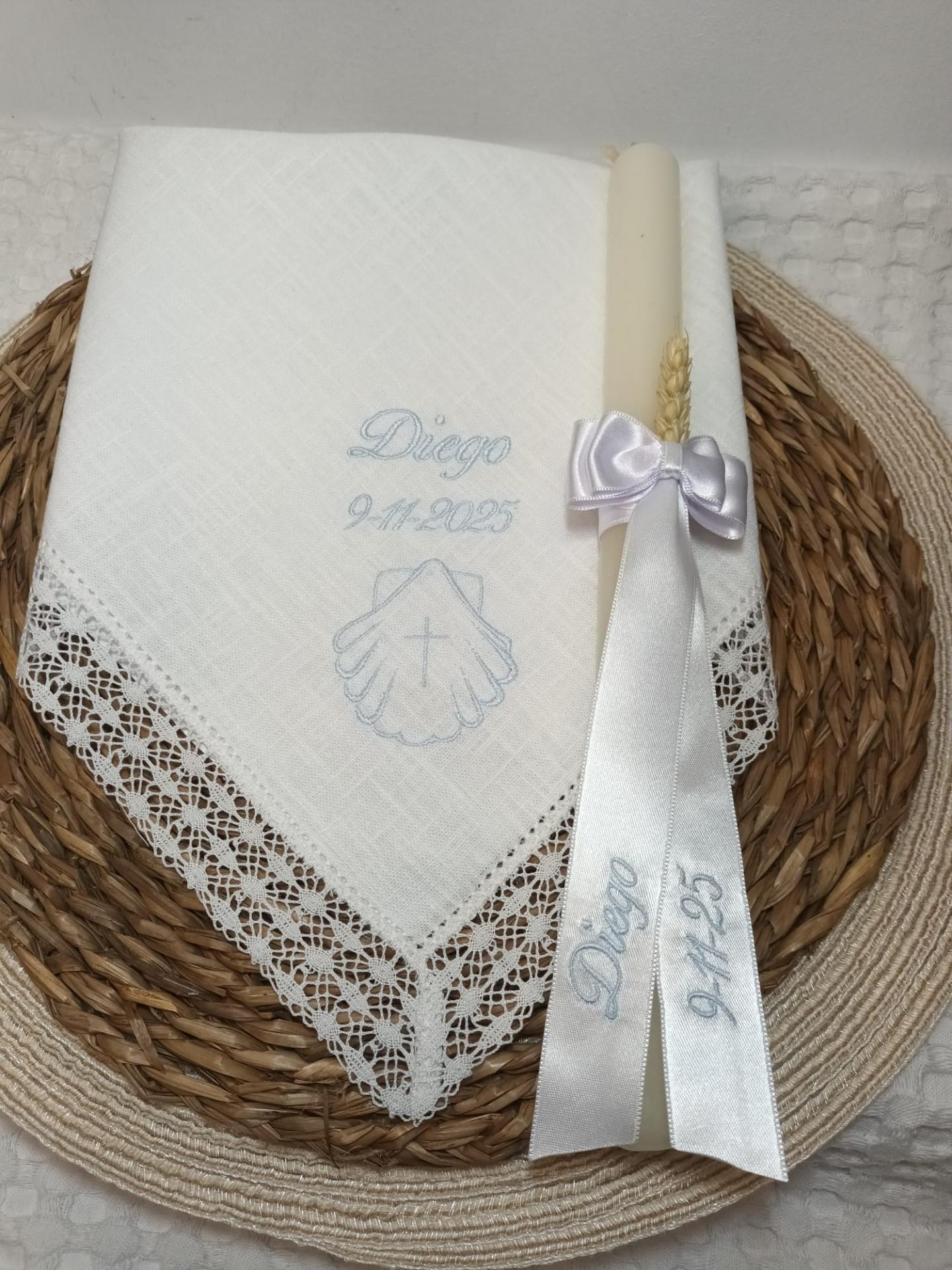 Pañuelo y vela bordado azul