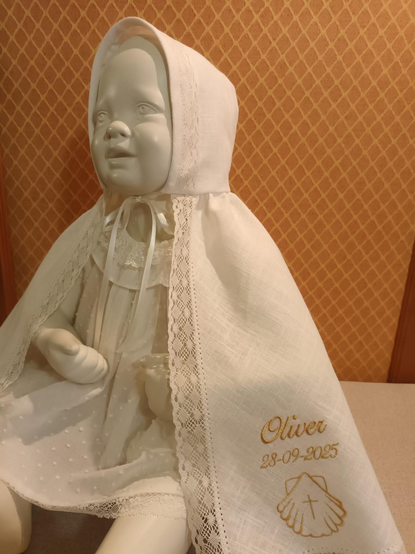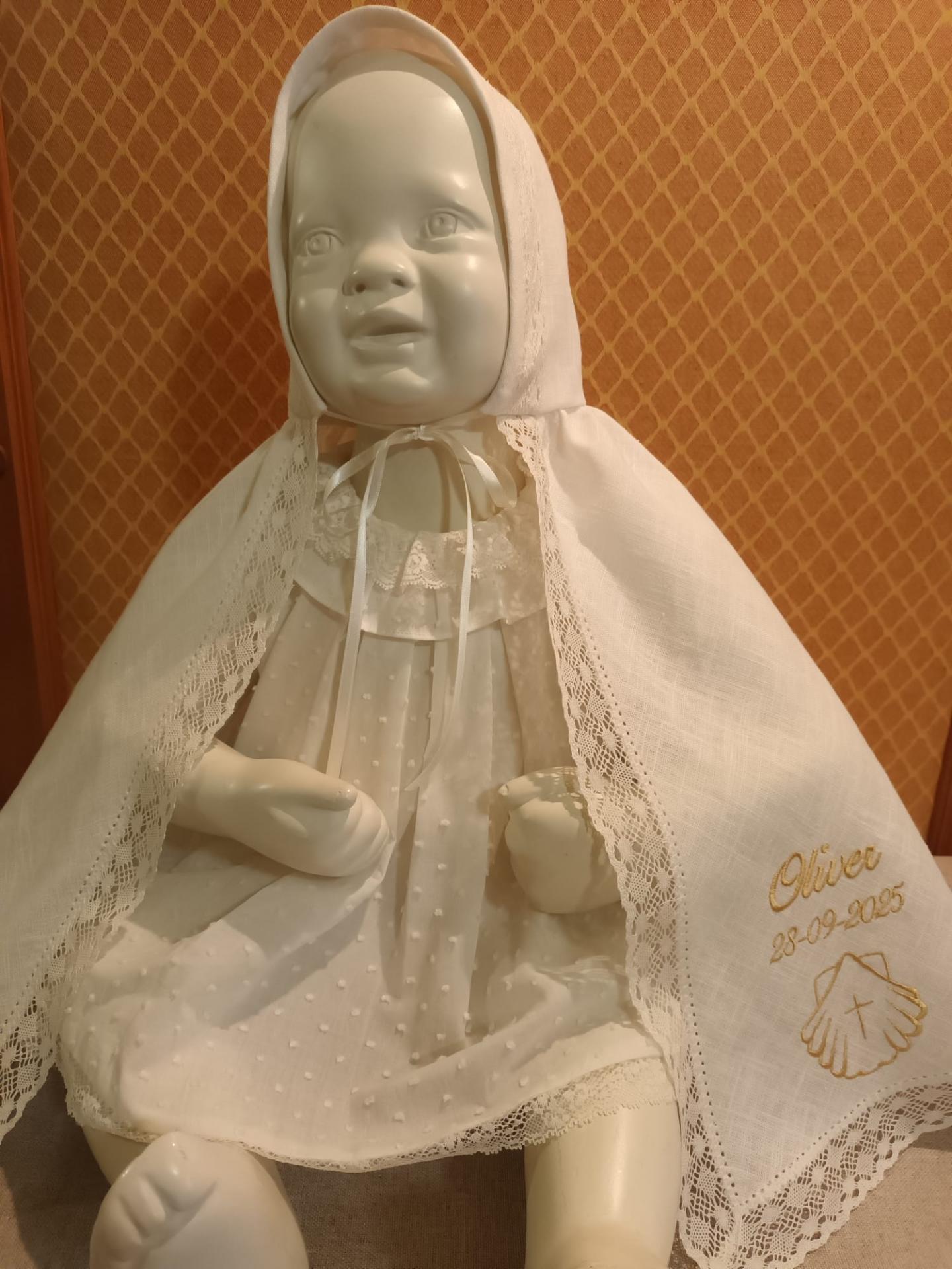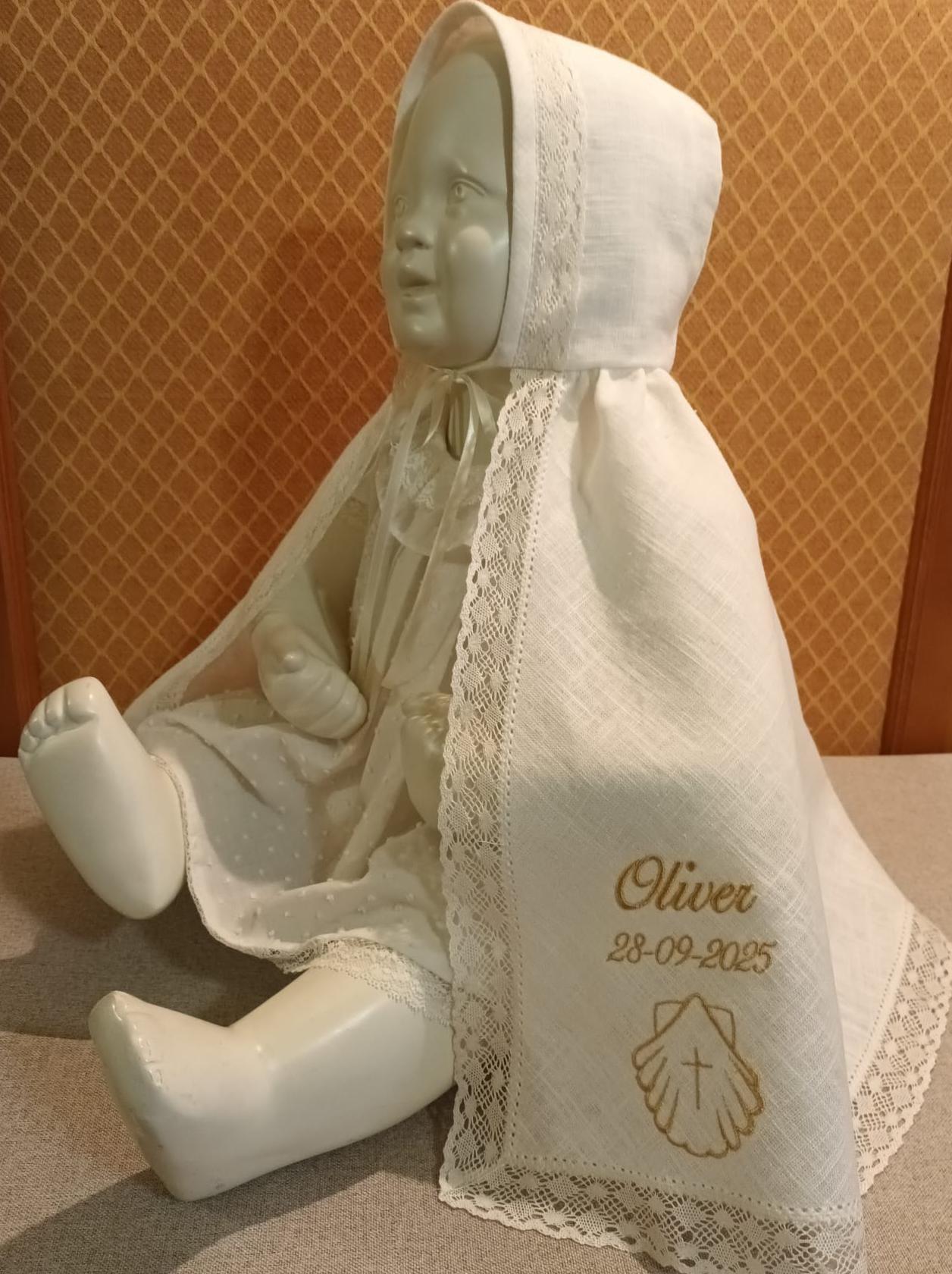 Capa de Bautizo confeccionada con tela de lino crudo .