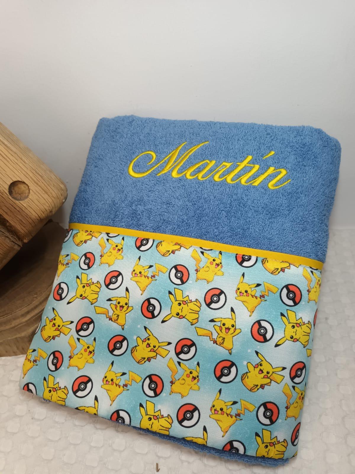 Toalla personaliza con cenefa de tela de Pikachu.
