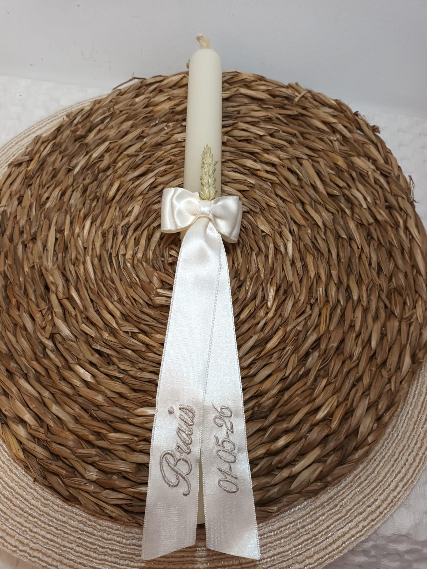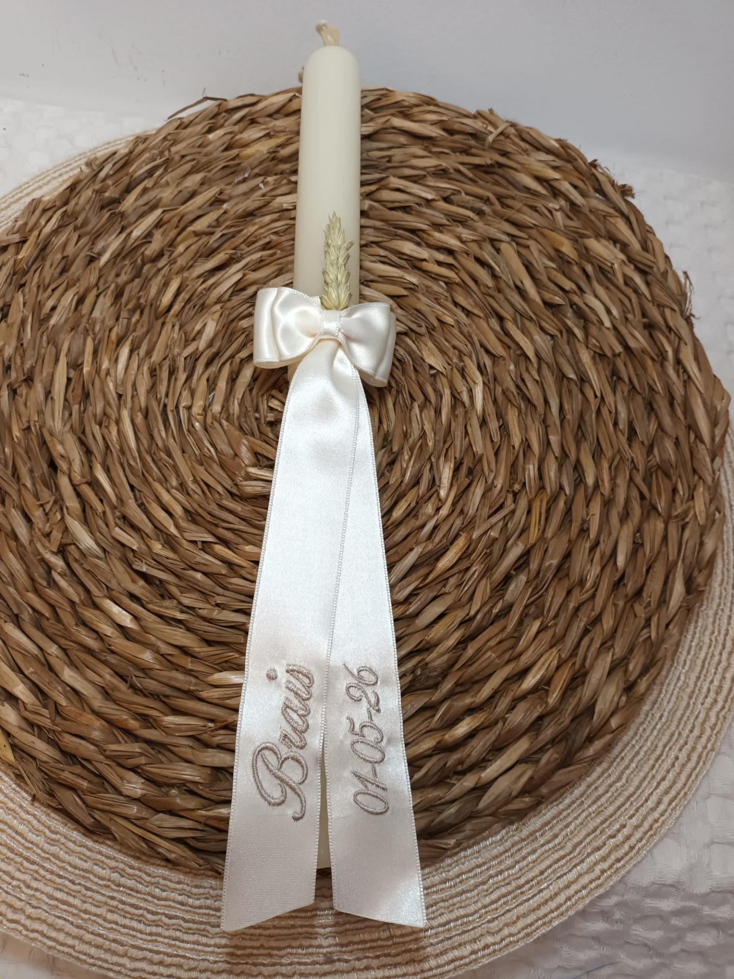Vela de Bautizo nº 25 bordada en color arena.