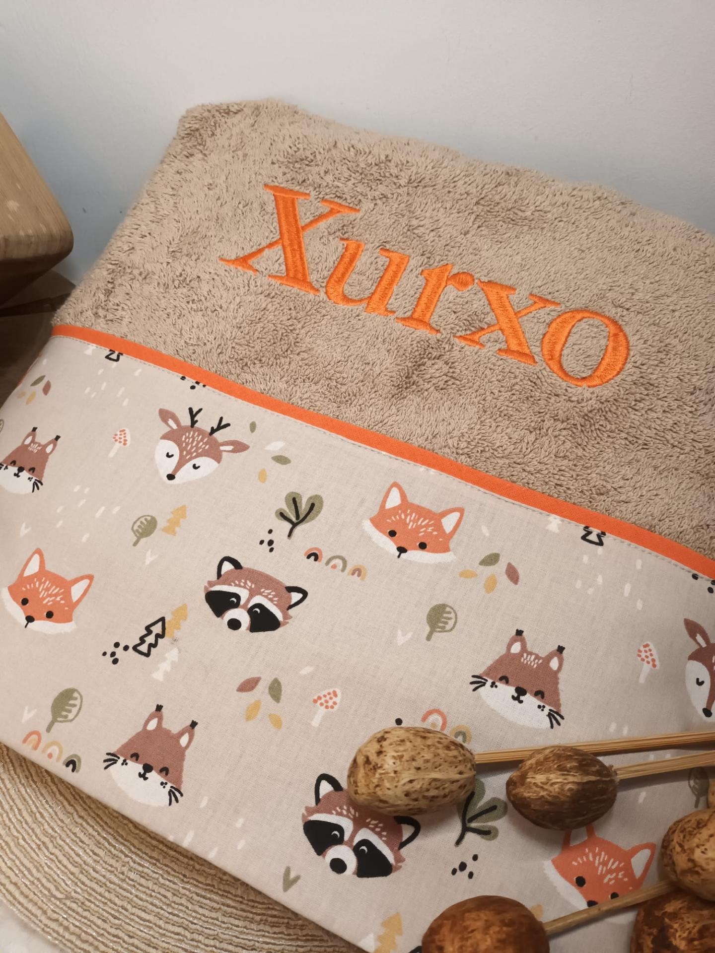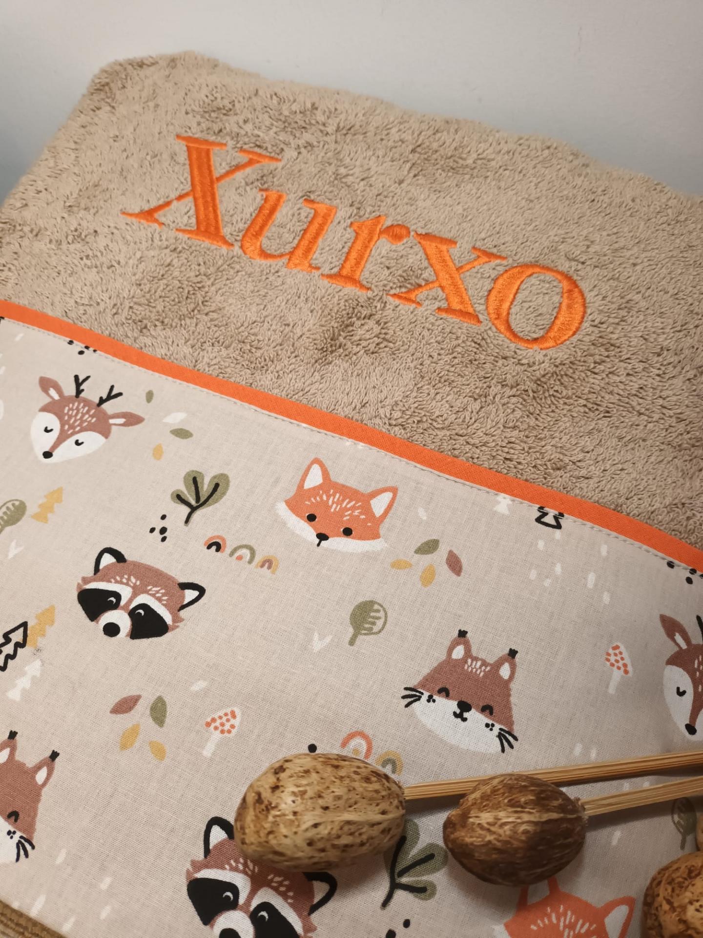 Toalla de ducha beige con cenefa de Zorros - Ciervos