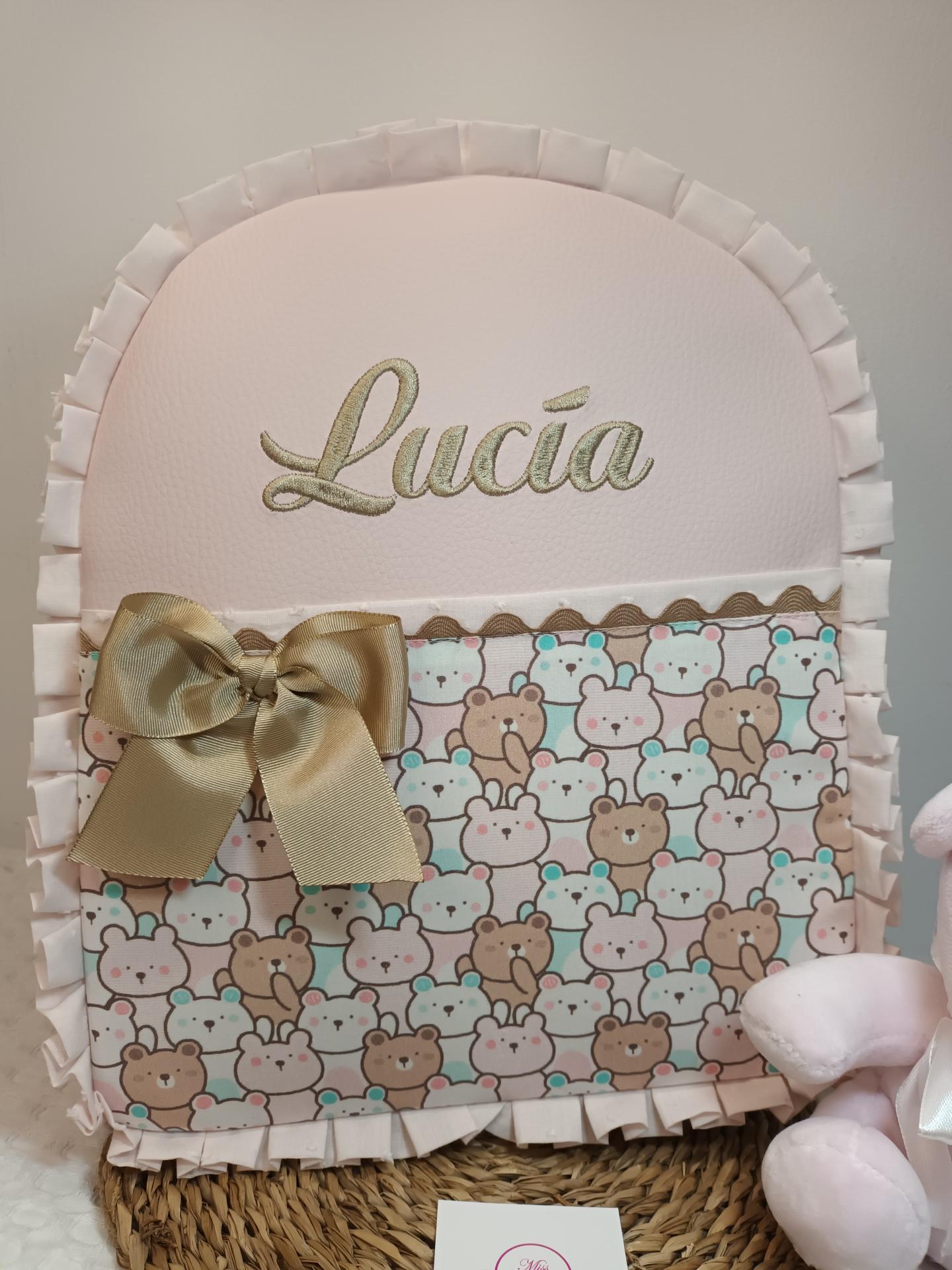 Mochila Valeria confeccionada con polipiel y con tela de Ositos.