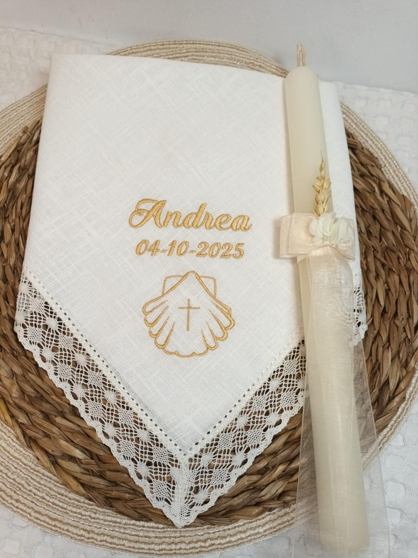Pañuelo de bautizo con, el nombre, la fecha